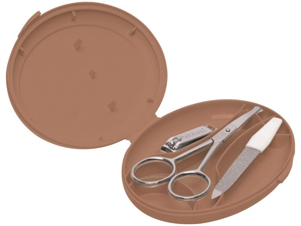 A Bebe-jou Baba manikűr szett egy 3 darabos rozsdamentes acél kozmetikai készlet praktikus, kompakt tokban, mely ideális a baba körmeinek ápolására. A készlet tartalma egy lekerekített végű babaolló, körömreszelő és körömcsipesz. A műanyag tok segít tisztán tartani az eszközöket, könnyen zárható és nyitható. A szett tökéletes megoldást nyújt gyermeke körömápolására, de minden esetben fokozott figyelem szükséges a műveletnél. Ajánlott minden használat előtt megtisztítani, újszülötteknél pedig alkohollal fertőtleníteni.