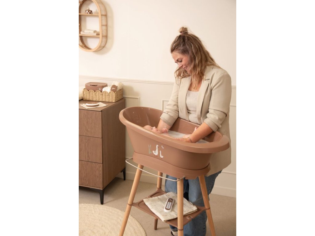 A Bébé-Jou Sense babakád az új vízkiengedő rendszerével és Click csatlakozó rendszerével az új Sense terméksorba tartozik, melynek része a luxus kivitelezésű, lakozott bükkfából készült karcsú lábakkal ellátott kádállvány is.