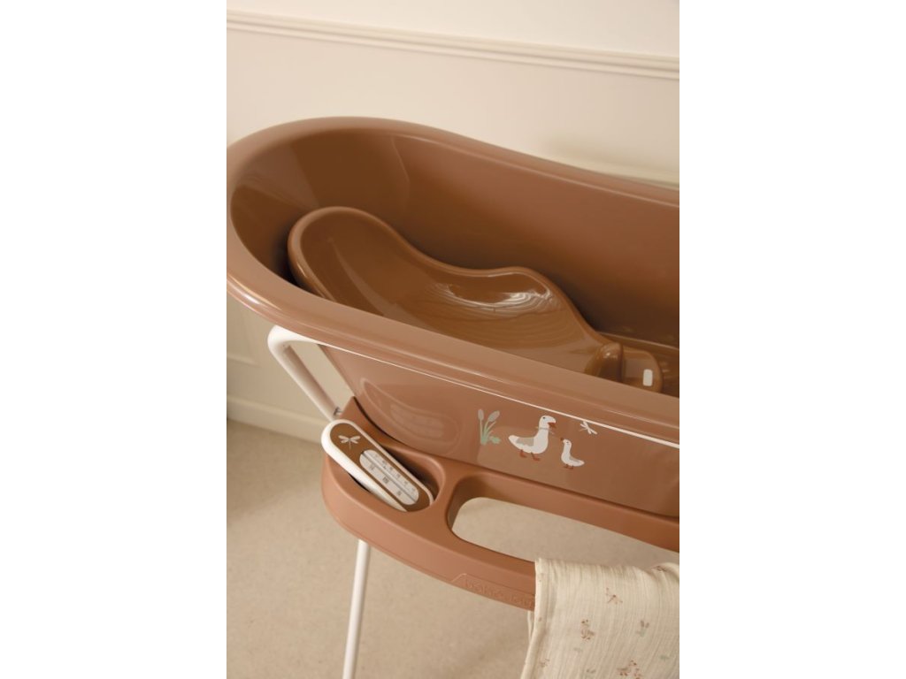 Születéstől 8 hónapos korig alkalmas. Az ergonomikus kialakítása megtámasztja a kicsit, amivel megkönnyíti a szülőknek a baba tartását fürdés közben. Tartozik hozzá rögzítő tapadókorong is. A Bebe-jou babatartó kádban és thermo kádban is használható, beleteheti viszont klasszikus nagy kádba is, vagy akár az utakra is elkísérheti.