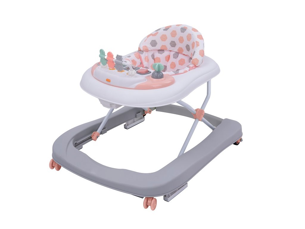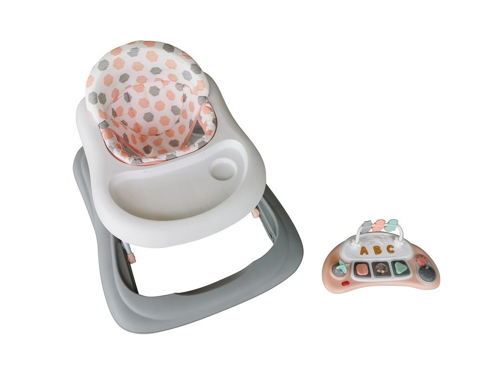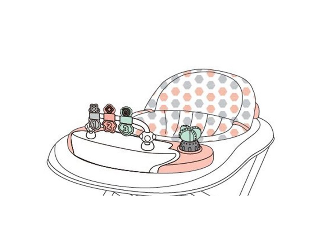 A teljes járókeret 3 pozícióban állítható magasságú, így alkalmazkodik a gyermek lábainak hosszához. Amikor a járókeretet tárolni kell, a felnőttek könnyen lehajthatják az aljára kattintva, hogy kevesebb helyet foglaljanak. A játékasztal könnyen levehető és nedves ruhával tisztítható.