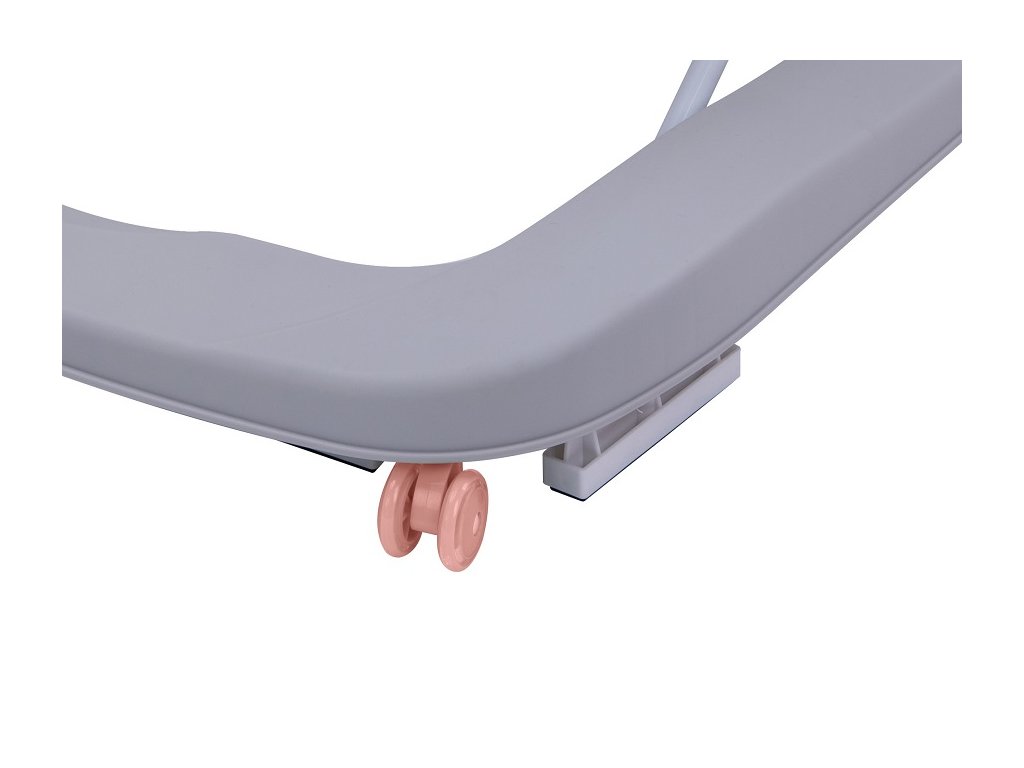 Az állítható sebességű kerekeknek köszönhetően kiválaszthatod, hogy milyen gyorsan – vagy lassan – mozogjon a járókeret. Ez biztosítja a biztonságos sebességet, amely megfelel gyermeked képességeinek és magabiztosságának a járás tanulása során. A sebességet közvetlenül a kerekeken könnyedén beállíthatod.