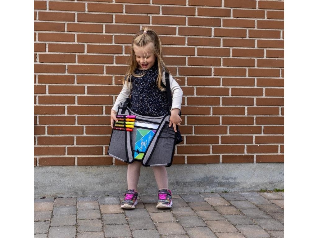 A különböző méretű praktikus elasztikus zsebekben minden elfér a zsírkrétától és jelölőtől a kis könyvekig és a rágcsálnivalók. A pult alsó részén található nagy cipzáras zseb és a közvetlenül a gyermek előtt található nagy műanyag zseb szintén bőséges lehetőséget biztosít a teljes papírkészlet, rajzok és könyvek szállítására útközben.