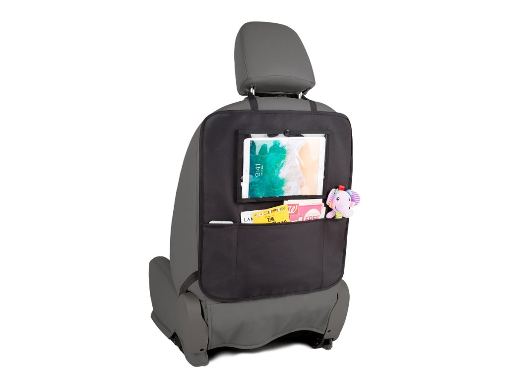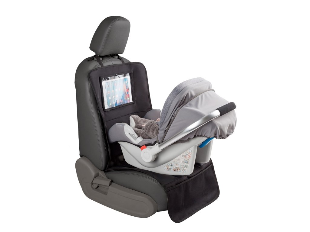 A BabyDan huzatvédővel nem kell aggódnia az ülések elszíneződése, foltok vagy karcolások miatt. Az ülésvédőnek többféle felhasználási területe van: háttámlavédő ként is használható, így elkerülheti a piszkos cipőből származó foltokat az első ülések háttámláján, vagy ülésvédőként az autóülés alatt. Extra vastag felülettel rendelkezik, amely segít megvédeni az autóülés aljáról származó kopástól. Ezenkívül az ülésvédő beépített tablettartóval és tároló zsebbel segít nyomon követni a játékokat, harapnivalókat és cumit útközben.