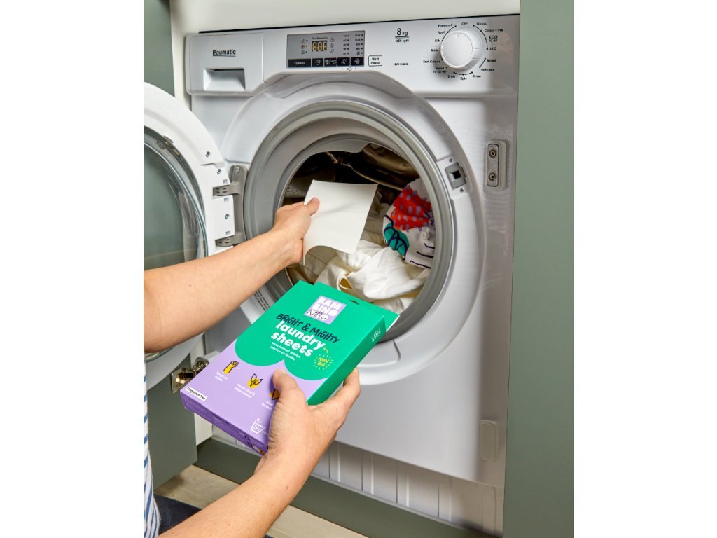 Helyezzen 1 mosólapkát (nagyobb mennyiségű vagy extra szennyezett ruhanemű esetén adjon hozzá még egy fél lapot!) közvetlenül a mosógép dobjába. Ezek a kis kendők tökéletesen könnyűek és helytakarékosak, teljesen feloldódnak vízben, és nem hagynak maradványokat – csak friss, tiszta ruhát.