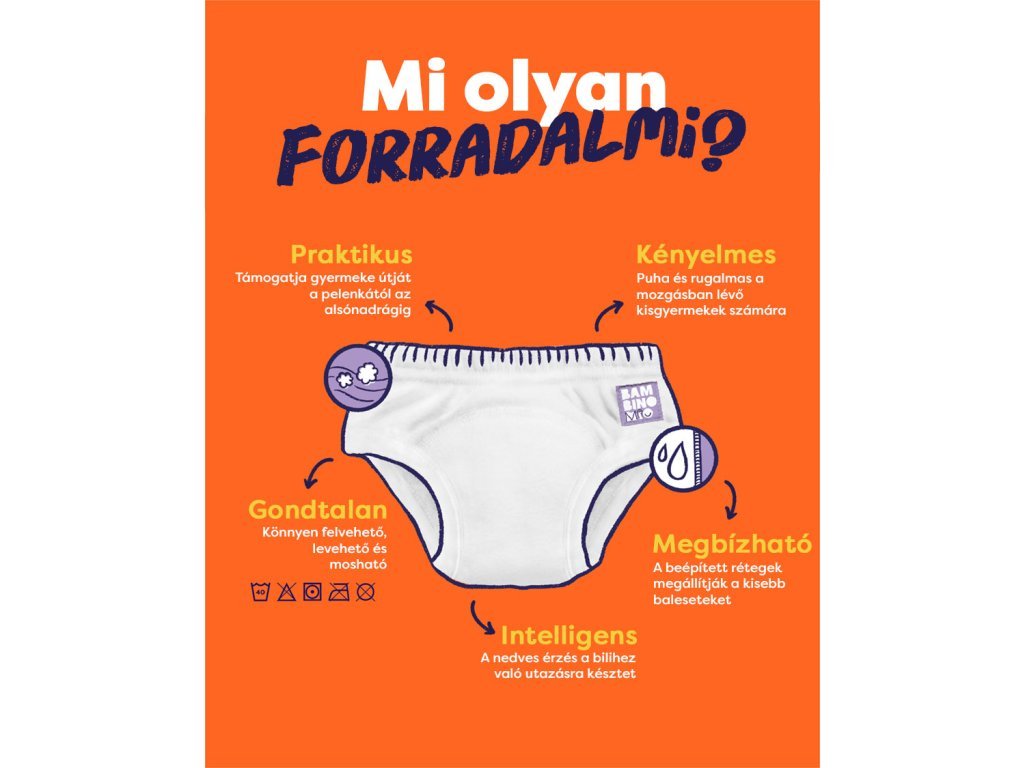 Az át nem eresztő réteg az abszorbens réteggel együtt részben véd a környezet szennyezésétől. Segítenek felgyorsítani a bili edzés folyamatát, de nem helyettesítik a pelenkát. Ajándékba adhatja őket egy gyereknek. Azt az érzést adják a gyermeknek, hogy már felnőtt, és nincs szüksége pelenkára. Ne használja őket, mielőtt a gyermek készen áll a bilire. A leszoktató pelenka tartalmaz egy nedvszívó réteget, amely kisebb mennyiségű vizeletet képes felfogni, de nem helyettesíti teljesen a többrétegű pelenkát a bugyival. Olyan gyerekeknek készültek, akik már átszoktak a bilire, de időnként kellemetlen baleseteik vannak. A leszoktató pelenkában azonnal érzi a nedvességet, felismeri, és felülhet a bilire. Éjszakára vagy alvásra ne tegye a gyerekre a leszoktató pelenkát, és ha nincs más lehetősége, tegye bele a leszoktató pelenkába egy másik Bambino Mio többrétegű pelenkát, ami kiegészíti a nedvszívó képességet. A leszoktató pelenkát az első használat előtt legalább kétszer mossa ki.