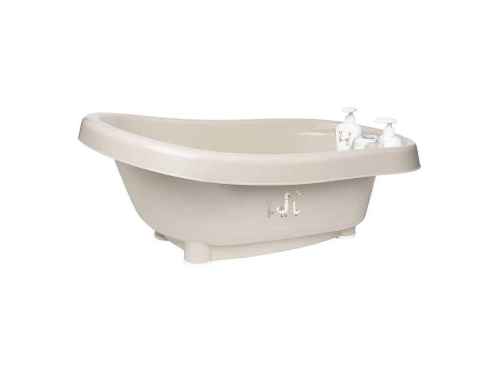 Egyetlen pillantással leolvashatja a pontos vízhőmérsékletet és fokról-fokra folyamatosan figyelheti a víz hőmérsékletének változását. A termo babakád beépített szappan- és sampon adagolóval rendelkezik. Így minden a keze ügyében lesz, fürdetés közben nem kell keresgélnie a szükséges dolgokat. Ezáltal soha nem fog megtörténni, hogy gyermekét felügyelet nélkül a kádban kéne hagynia, ami a sérülések gyakori oka. A termo babakád 2 kattintással könnyen és biztonságosan felhelyezhető a kompatibilis állványra. A beépített vízelvezető rendszer segítségével könnyen kiürítheti. Hollandiában gyártották.