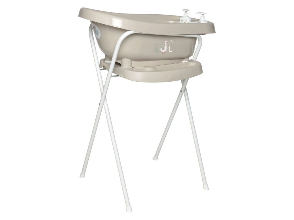 A Bébé-Jou kád és állvány kombinációjával a fürdetés egyszerűbb és kényelmesebb. Biztonságos csatlakozás a Bébé-Jou kádállványhoz a Click-rendszer segítségével. A termo babakádat elhelyezheti akár az asztalon is, mivel a lábai csúszásmentes réteggel bevontak. Könnyen tisztán tartható. A kádállvány használatakor a babakádat a vízleeresztő cső segítségével kiürítheti. A vízleeresztő cső a termo babakád tartozéka. A vízelvezető nyílás a beépített vízhőmérő alatt található. Az állványok megfelelnek az összes biztonsági előírásnak. Ezt a TÜV tanúsítvány is megerősíti.