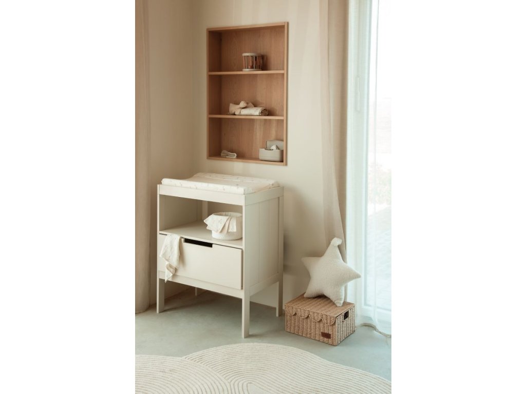 A pelenkázó lap ideális méretekkel rendelkezik, 72 x 44 x 9 cm.