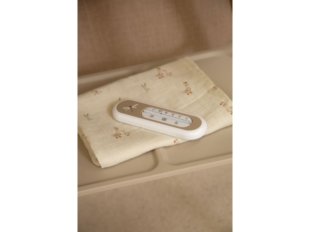 A gyermek fürdetéséhez ideális hőmérsékletet a hőmérő egy kis nyíllal jelzi. A nagy számlapnak köszönhetően könnyen leolvashatod a hőmérsékletet. A helyiség hőmérsékletének, ahol a babát fürdeted, legalább 23 Celsius fokosnak kell lennie. A hőmérő biztonságos, nem tartalmaz higanyt, a mérőcső pedig műanyaggal védett. A Bébé-Jou motívummal ellátott apró minta felkelti a baba figyelmét fürdés közben és rengeteg vízi szórakozásra ad lehetőséget.