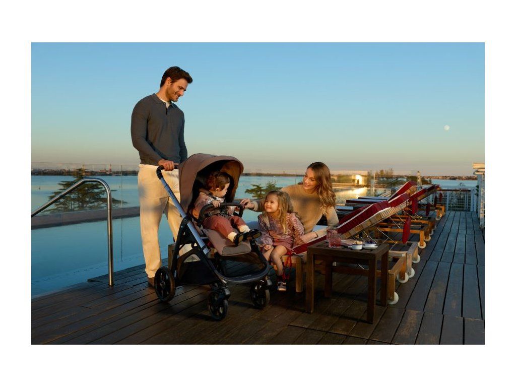 • Lábzsákkal, teljes fedést biztosító, UV-védelemmel (UPF 50+) ellátott tetővel, karfával és cumisüveg-tartóval együtt kapható.