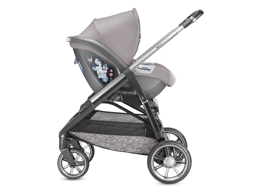 - Egyszerű mechanizmus a bébihordozó rögzítésére és levételére. Könnyedén levehető és áthelyezhető az Inglesina vázra, Stand Up állványra vagy a bázistalpra az autóba, adapter felhasználása nélkül.
