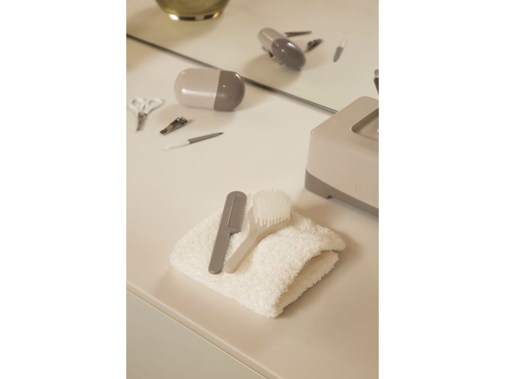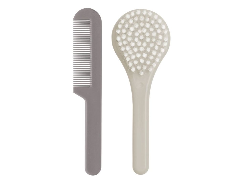 • Tartalma egy kefe természetes sörtékkel és lekerekített fogú fésű