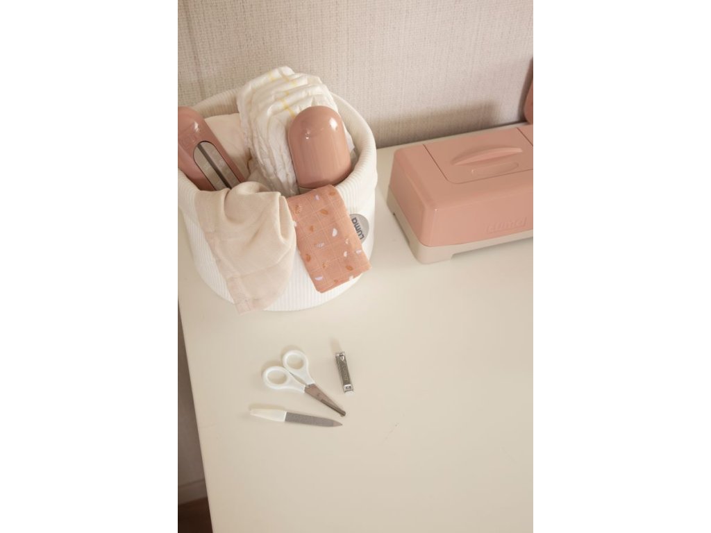 Manikűr:tartalmaz egy lekerekített végű ollót, körömreszelőt és kis körömcsipeszt is. Minden rozsdamentes acélból készült. Egyes használat előtt mindent alaposan tisztítson le, újszülött baba esetén deizinfikálja alkoholos oldattal.