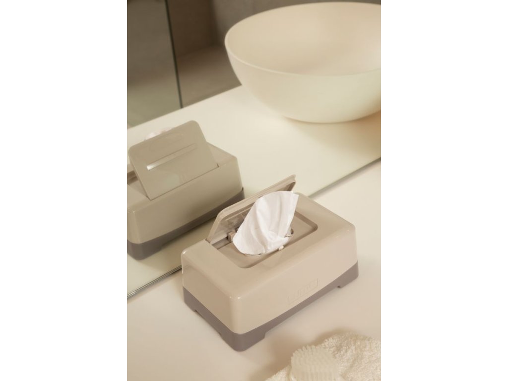 - A több színben kapható törlőkendő tároló része a LUMA Babycare által kínált fürdőszobai kellékek széles választékának.