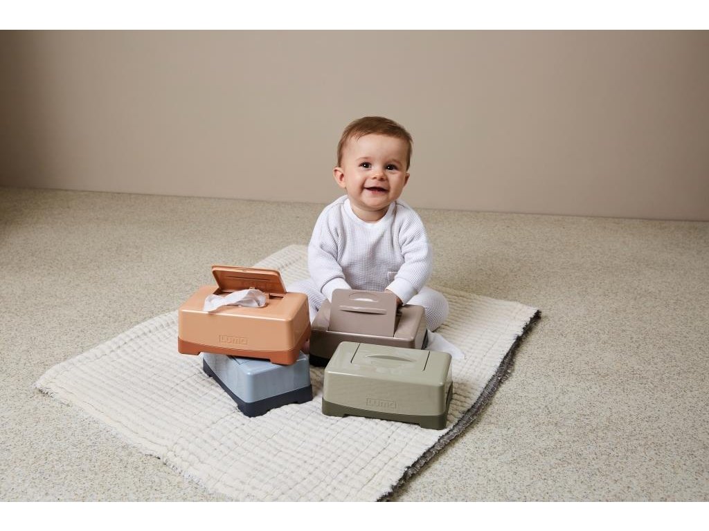 - A több színben kapható törlőkendő tároló része a LUMA Babycare által kínált fürdőszobai kellékek széles választékának.
