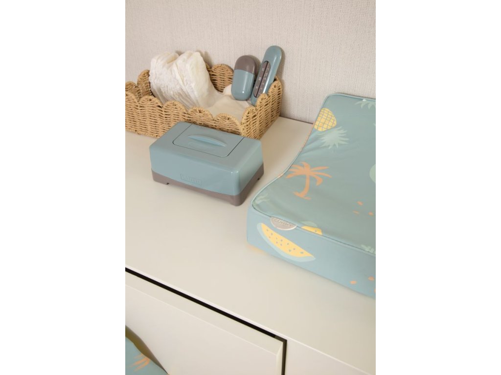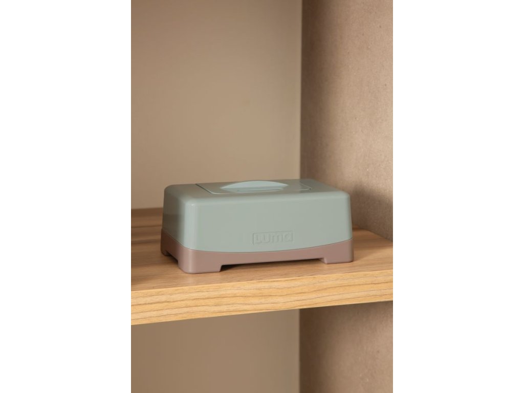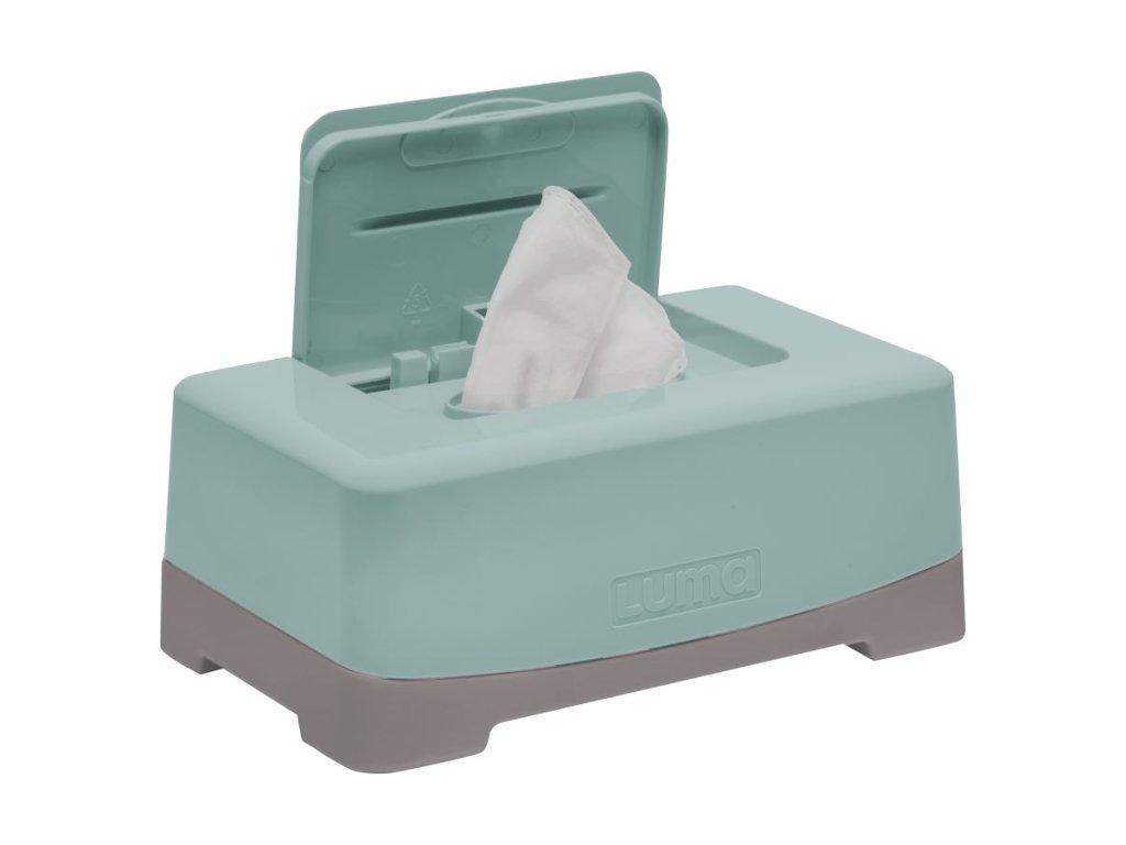 • A több színben kapható törlőkendő tároló része a LUMA Babycare által kínált fürdőszobai kellékek széles választékának.