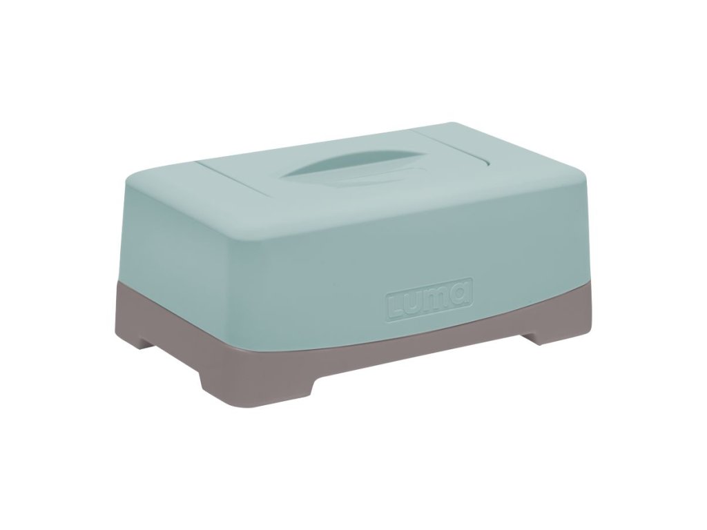 Univerzális nedves törlőkendő tároló a holland LUMA Babycare kínálatából, most az Ice Blue kollekció divatos árnyalatában.