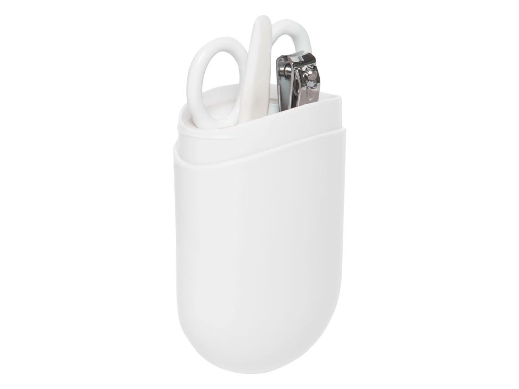 Manikűr:tartalmaz egy lekerekített végű ollót, körömreszelőt és kis körömcsipeszt is. Minden rozsdamentes acélból készült. Egyes használat előtt mindent alaposan tisztítson le, újszülött baba esetén deizinfikálja alkoholos oldattal.