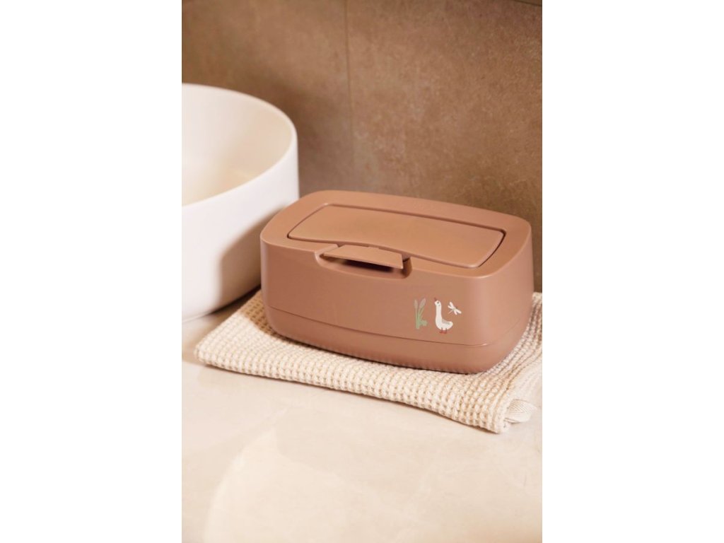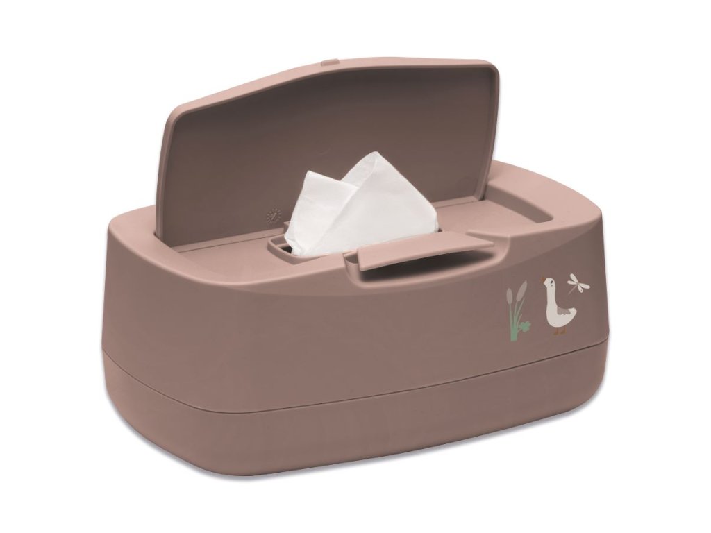 A doboz egy speciálisan kialakított fedéllel rendelkezik, mely védi a kendőket kiszáradástól. Könnyen zárható. speciális kinyitás lehetővé teszi a további törlőkendők könnyű kihúzását. A egy kézzel egyszerűen kinyitható. Szép kiegészítő a pelenkázó lap mellé.