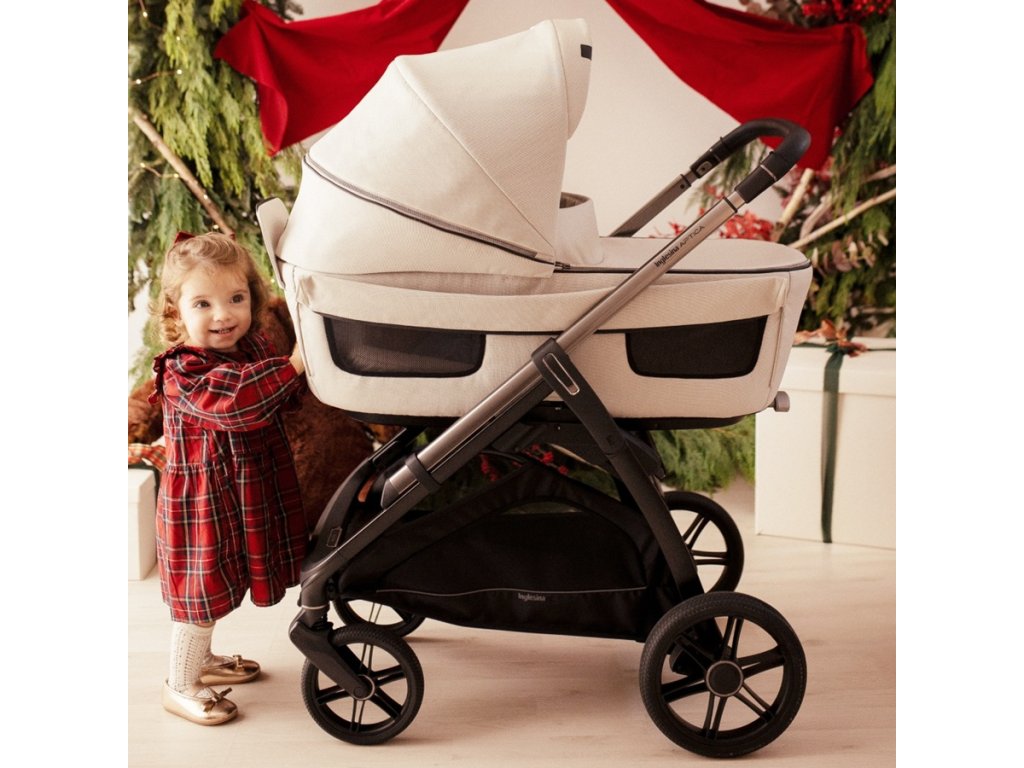 Az Aptica 4v1 szett tartalmazza: tágas XXL mózeskosár 5 szellőző ablakkal, matrac, Welcome PadTM, Stand UpTM állvány, Darwin R129 autósülés, All Season sportülés lábzsákkal, bevásárlókosár, pohártartó, az új Aptica babakocsi váz.
