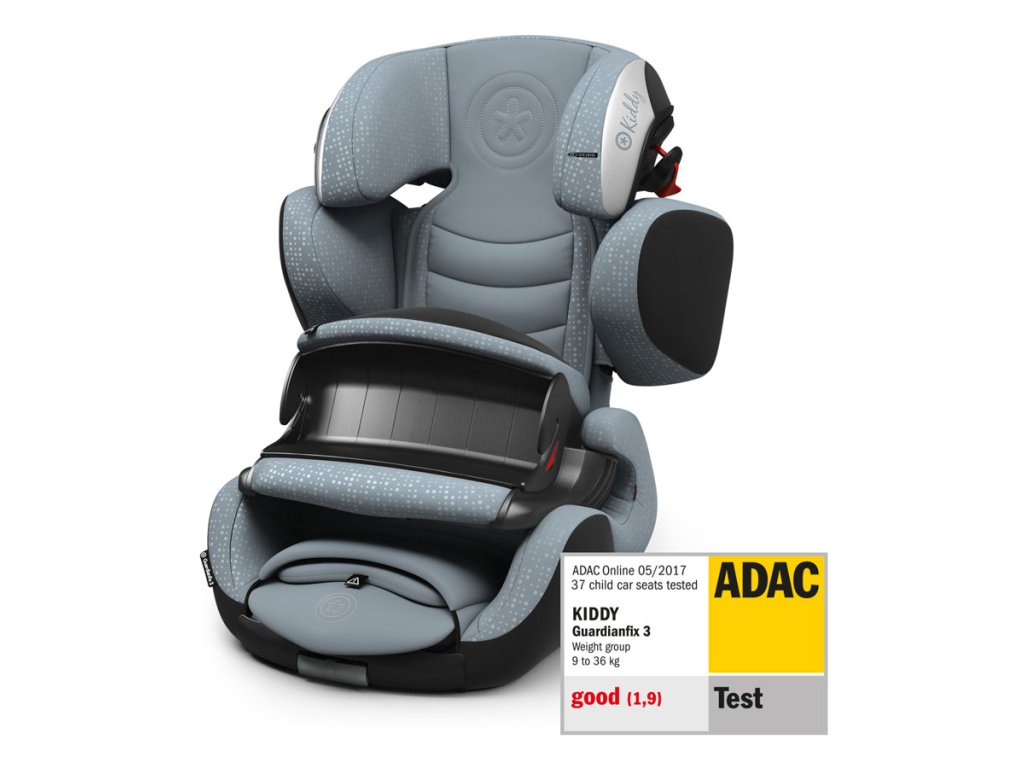 Frontális ütközés esetén csökkenti a gyermek nyakcsigolyáinak sérülésének kockázatát, mérsékli a gyermek mellkasára és hasára nehezedő terhelést. A hagyományos, csak övvel ellátott autósülésekben a gyermek feje a tehetetlenség miatt előre vagy hátra csapódhat, amit a védőpajzs a kinetikus energia elnyelésével tud megakadályozni. Az eredeti Kiddy védőpajzs több mint 30 éve fejlesztik. Kialakítása ezért hatalmas mennyiségű, valós balesetek teszteléséből és tanulmányozásából származó tapasztalatot tartalmaz. A Kiddy energy pro és a Kiddy guardian pro ülésekben egy további ütéscsillapító réteget adtak a védőpajzshoz. Ha a védőtálca korábban az ütközés során keletkező energia 60%-át tudta elnyelni, az új integrált réteg a fennmaradó 40%-ot nyeli el. Az összes későbbi modell ezzel az innovációval van felszerelve. A védőpajzs megfelelő működéséhez rendkívül fontos a gyermek fejének a pajzshoz viszonyított helyes helyzete. Ezért a Kiddy autósülések a legkisebb gyermekek számára állítható magasságú betéttel vannak felszerelve.